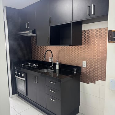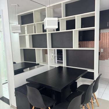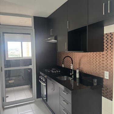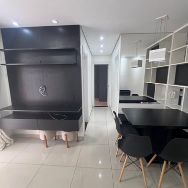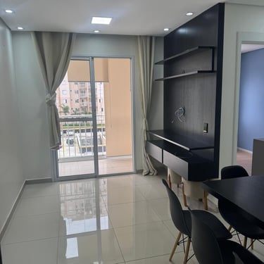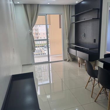 Apartamento 54 mts com 2 dormitórios sendo 1 suíte (com móveis planejados), cozinha planejada, com cooktop, forno, depurador, sala de jantar, lavanderia planejada, sala de estar e sacada com fechamento em vidro, com 1 vaga de garagem. Na parte das salas, cozinha e sacada, luzes controladas por Alexia.